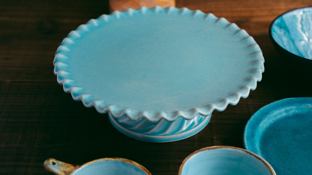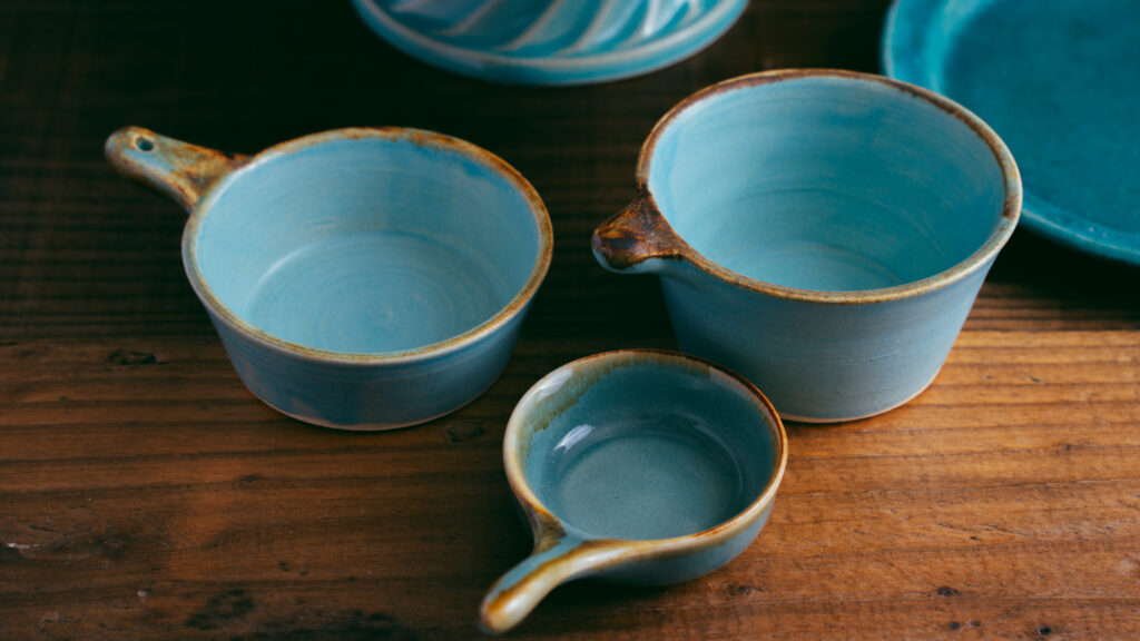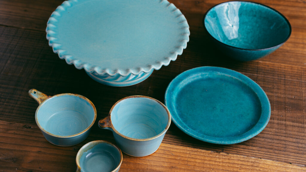 トルコ釉の器は、酸化銅の作用によって生まれる鮮やかな青緑色が魅力です。